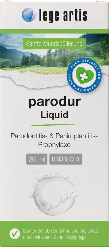 - Zur Vorbeugung von Gingivitis, Parodontitis/Periimplantitis in Kombination mit parodur/durimplant Gel
