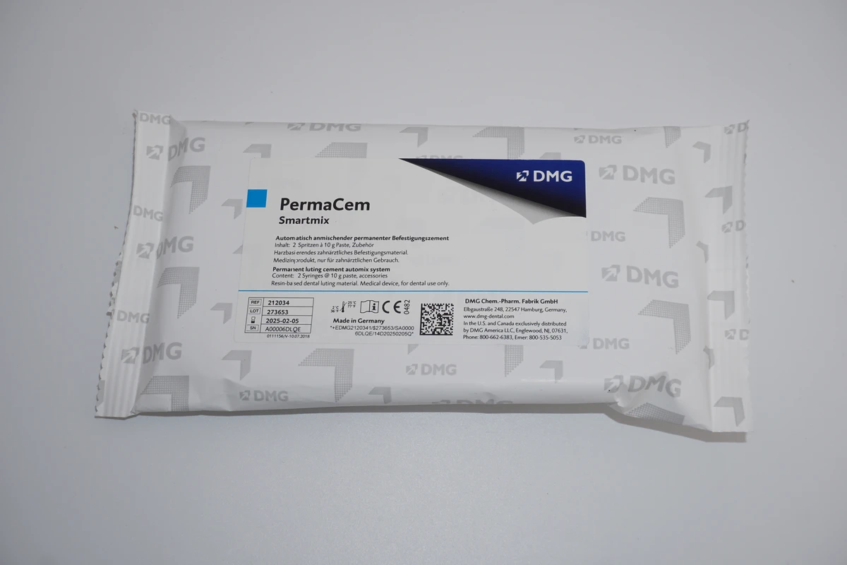 PermaCem 2.0 - selbstadhäsiver, dualhärtender Zement.Selbstadhäsiver Zement mit hoher natürlicher Eigenhaftung auf Zirkon, zur permanenten Befestigung von Inlays, Onlays, Wurzelstiften und von Kronen und Brücken auf Implantat-AbutmentsUniversell einsetzbar, zuverlässiger Halt auch auf Silikat- und Oxidkeramiken, Edelmetall, NEM und CompositenEinfachste Überschussentfernung, kein Tropfen, außergewöhnliche Fließfähigkeit unter Druck, zeitsparende Anwendung Inhalt 9 g Spritze15 Smartmix-Tips Short5 Smartmix-Tips Endo M Produktvideos: