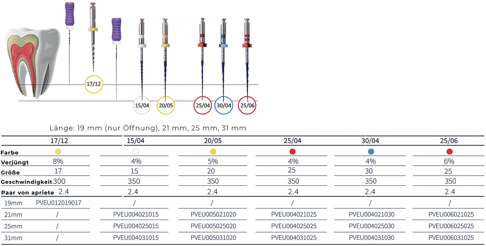 Produktinformationen "Platinum V.EU Packung 6 Stück 21 mm, Taper.05 ISO 020"