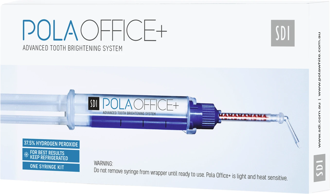 POLAOFFICE+ ist das Zahnaufhellungssystem zur Anwendung in der Praxis. Es wird nur eine minimale Behandlungszeit nötig. Eine geringe Behandlungszeit bedeutet mehr Komfort und mehr Zufriedenheit für den Patienten. Anmischen ist nicht mehr notwendig. In der Dualkammerspritze wird das Gel angemischt, während es auf die Zähne aufgetragen wird.
