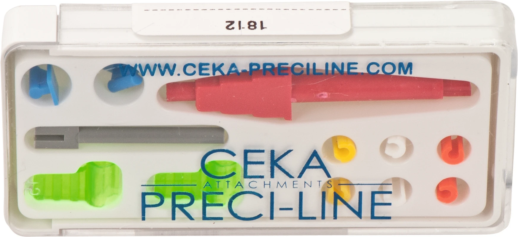Produktinformationen "PRECI-VERTIX P Combi-Set 2 abgeschrägte Patrizen, 6 Matrizen (gelb, weiß, rot), 2 Kunststoffgehäuse, 1 Eindrückstift, 1 Parallelhalter"