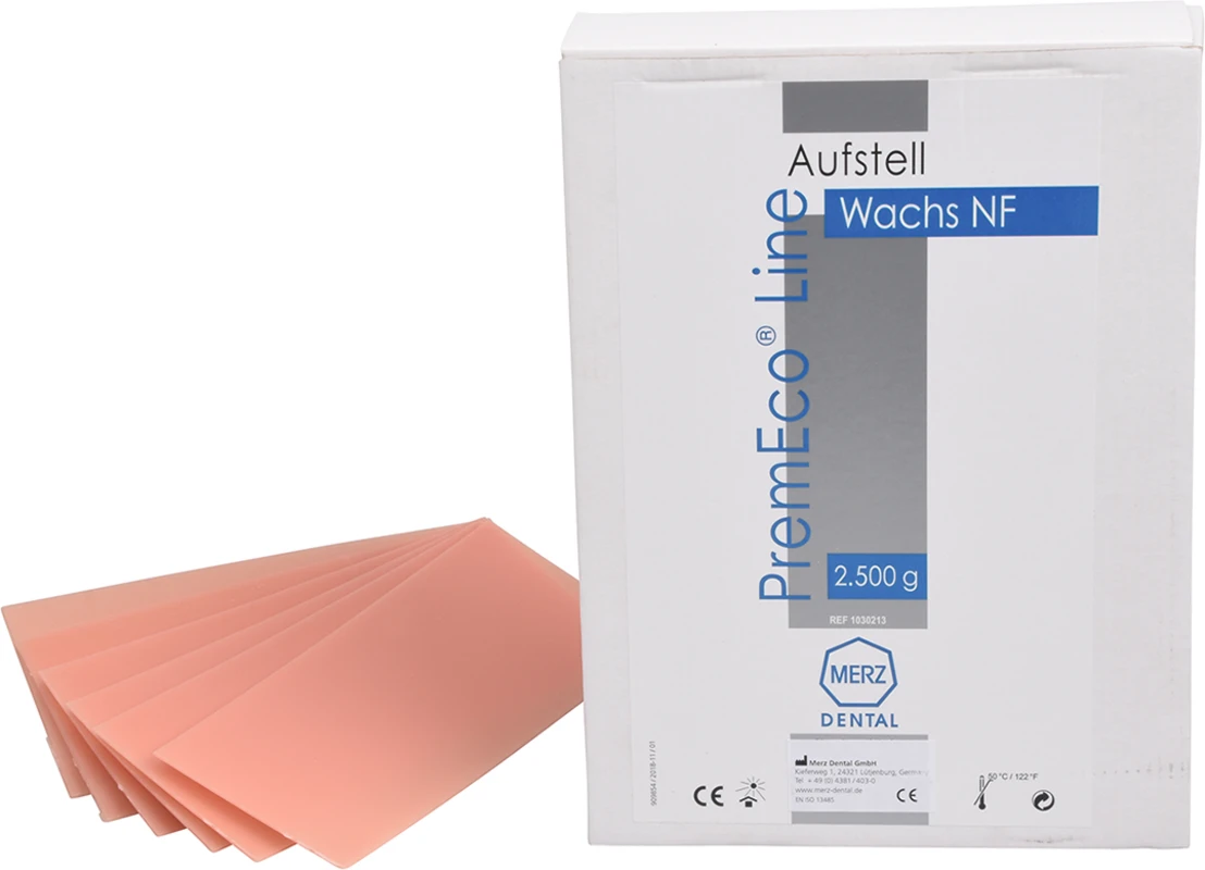 Temperaturbeständiges Aufstellwachs für alle Arbeiten in der Prothetik mit hoher Erweichungstemperatur und unauffälliger Farbgebung für die Wachsanprobe.