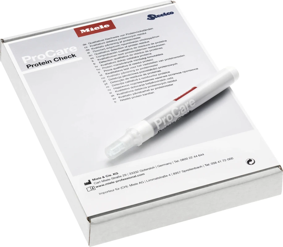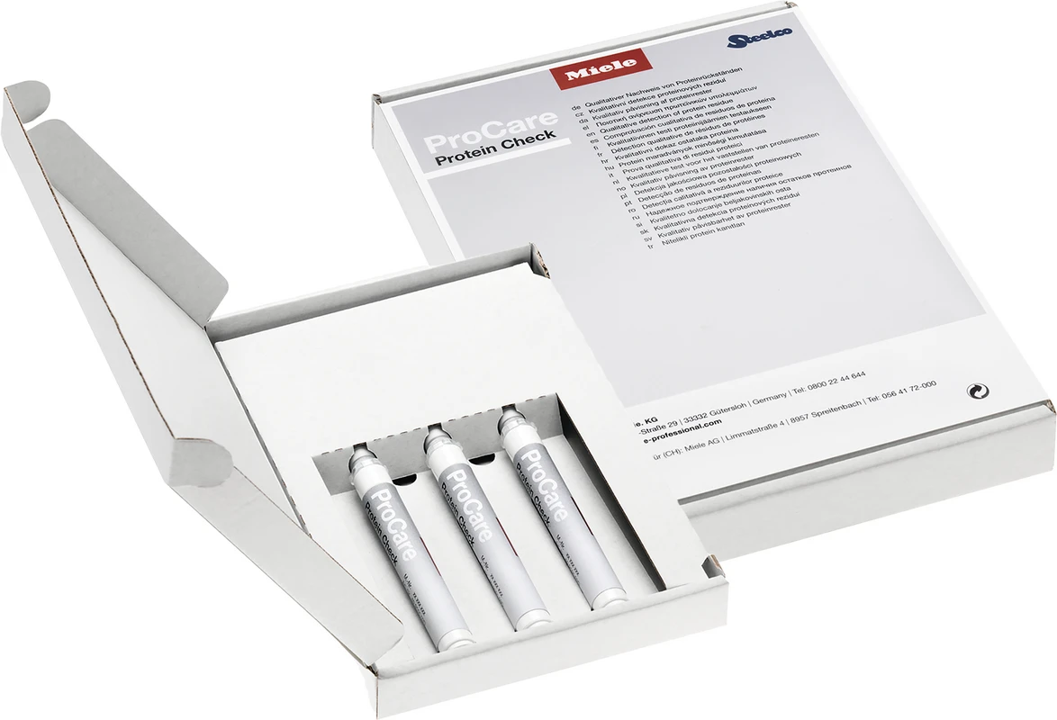 Der ProCare Protein Check dient dem qualitativen Nachweis von Proteinrückständen nach der Beendigung eines Aufbereitungsprozesses mit thermischer Desinfektion. Der Nachweis erfolgt durch spezifische Bindung des Farbstoffs "Acid Red" an Protein.
