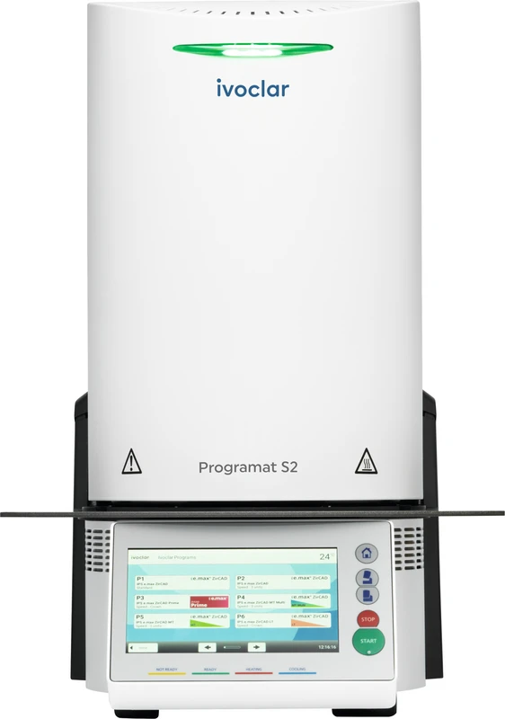 Der Programat® S2 ist ein kompakter Ofen zum Sintern von Gerüsten oder vollanatomischen Restaurationen aus IPS e.max ZirCAD oder anderen Zirkonoxid-Materialien mit einer Temperatur von bis zu 1600 °C. Da er in den Ivoclar Vivadent-Workflow integriert ist bietet er nicht nur einen lückenlosen Prozessablauf, sondern sichert auch eine durchgehend hohe Qualität.