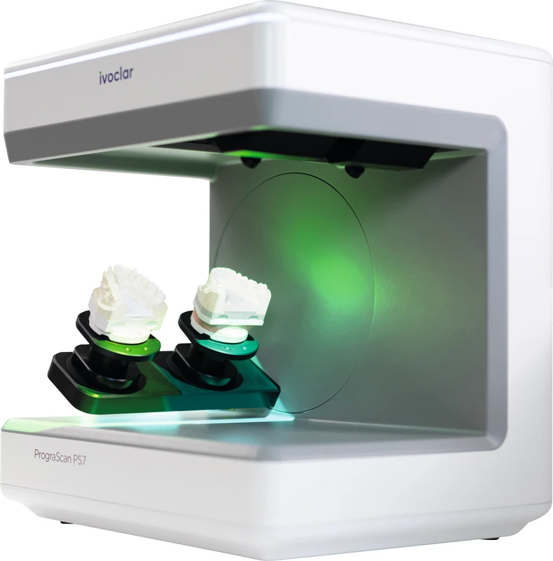 Simultan scannen. 2 Modelle in 10 Sekunden. Vollautomatisch.Der PrograScan® PS7 ist ein High-End-Laborscanner, der Ober- und Unterkiefermodelle simultan scannen kann. Die reine Scan-Zeit für zwei Modelle beträgt 10 Sekunden mit einer Genauigkeit von 5 µ. Ausgestattet mit zwei Scan-Tellern, zwei optischen Lichteinheiten und acht Kameras lässt sich der Scan-Auftrag mit nur einem Klick starten. Jegliches Zubehör wird automatisch erkannt. Und – in zwei Minuten stehen die digitalen Modelle in der Design-Software bereit. Im Vergleich zu sequenziellem Scannen ergibt sich so ein deutlicher Zeitgewinn um das rund Dreifache. In Verbindung mit der exocad DentalCAD Software ist der PrograScan® PS7 ebenso leicht und intuitiv zu bedienen, wie alle unsere Laborscanner aus der PrograScan-Familie.