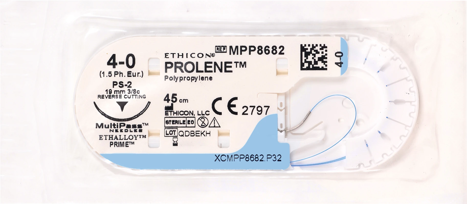 PROLENE [Polypropylen] ist ein synthetisches, nicht resorbierbares, monofiles Nahtmaterial. PROLENE zeichnet sich insbesondere durch die isotaktische Eigenschaft und das inerte Gewebeverhalten des Fadens aus.