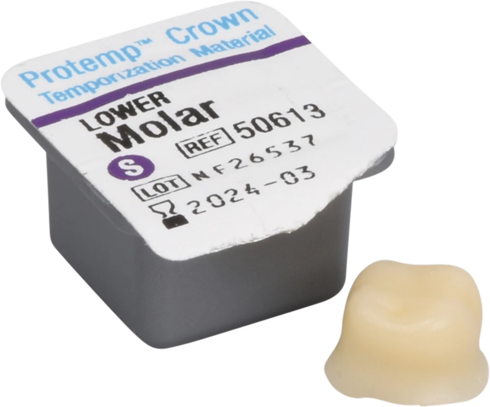 3M™ Protemp™ Crown Temporäre Krone ist die weltweit erste vorgefertigte und formbare Krone und ermöglicht die Erstellung einer provisorischen Einzelzahn-Krone in 4 Minuten oder auch weniger. Damit arbeiten Sie bis zu zweimal schneller als mit einem Automix- oder Pulver-Flüssigkeits-System.