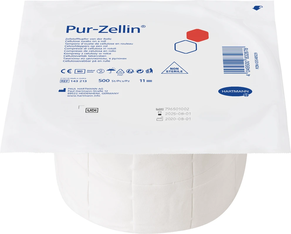 Tupfer aus hochgebleichtem Verbandzellstoff, gebrauchsfertig vorgestanzt auf der Rolle. Formstabil, abriebfest, steril und unsteril erhältlich.
