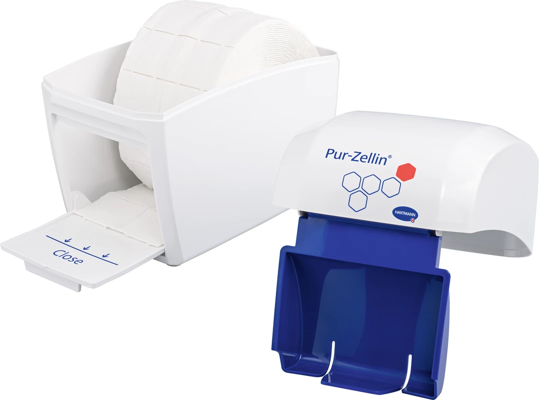 Spenderbox für Zellstofftupfer. Die Pur-Zellin® Box ist eine wiederverwendbare, unsterile Spenderbox und ein Zubehör für das sterile Pur-Zellin, um die Kontaminierung steriler Pur-Zellin® Tupfer zu verringern, nachdem sie aus ihrer sterilen Verpackung entnommen wurden. Sie kann von Laien und medizinischen Fachkräften verwendet werden.