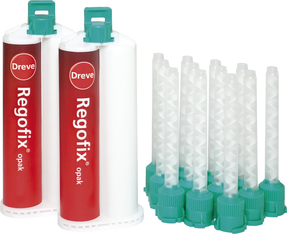 Produktinformationen "Regofix® opak Packung 2 x 50 ml Doppelkartusche, 12 Mischkanülen grün"