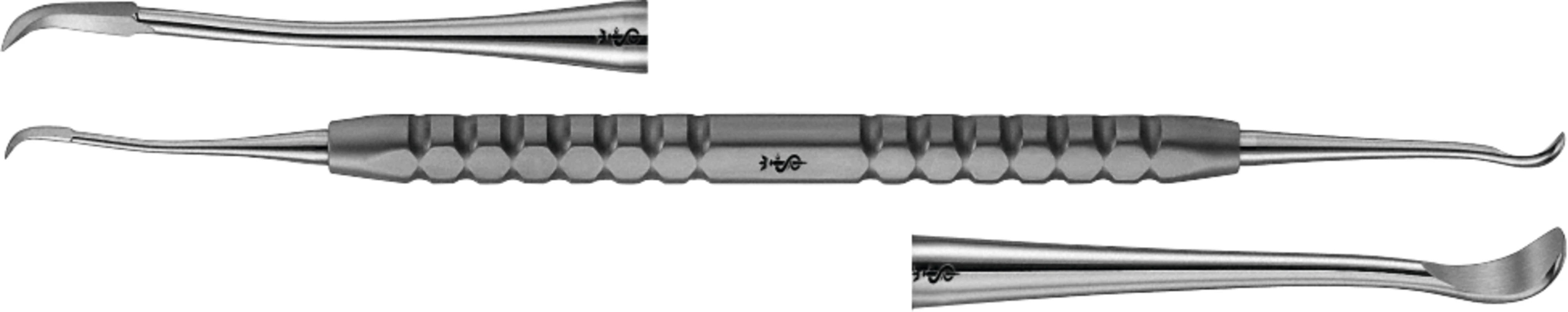 Der Reinwaldhaken ist eine Kombination aus einem stabilen Sichelscaler und einer verstärkten geraden Kürette. Es ist ein sehr vielseitiges Instrument, das sowohl in der Paradontologie, Chirurgie, als auch in der Prothetik Anwendung findet und auch als "Myrtenblatt" bezeichnet wird.