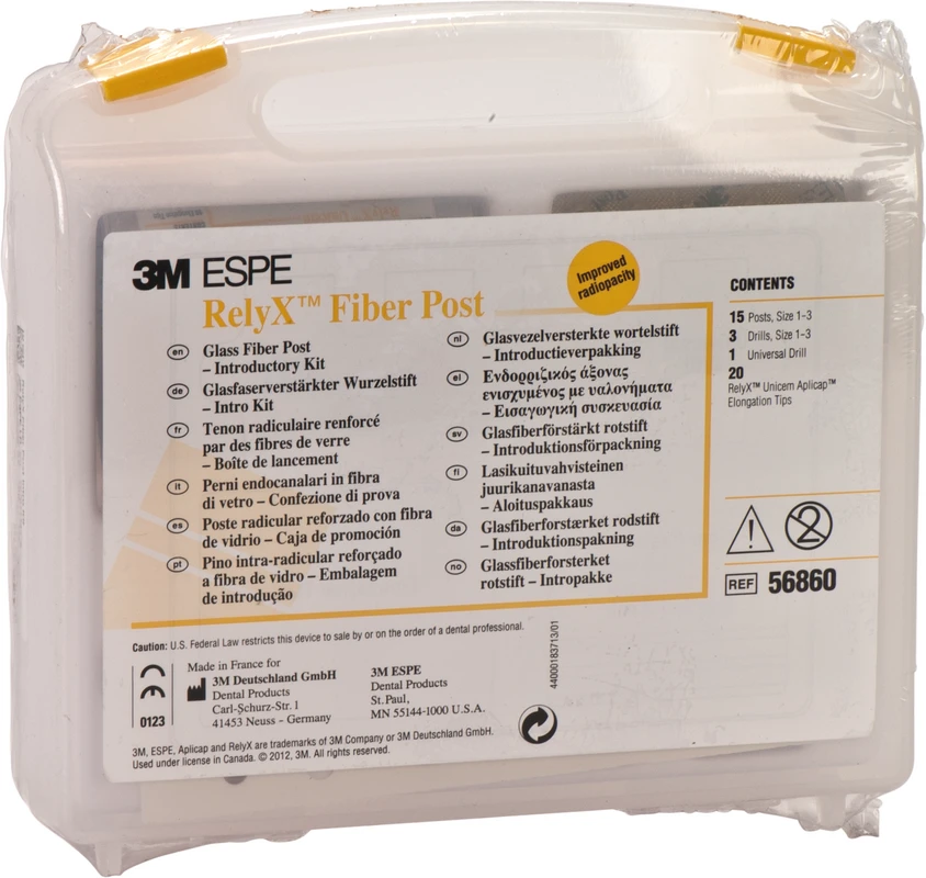 Produktinformationen "RelyX™ Fiber Post Intro Kit 15 Stifte (gelb, rot, blau), 4 Bohrer, 20 Kanülen"