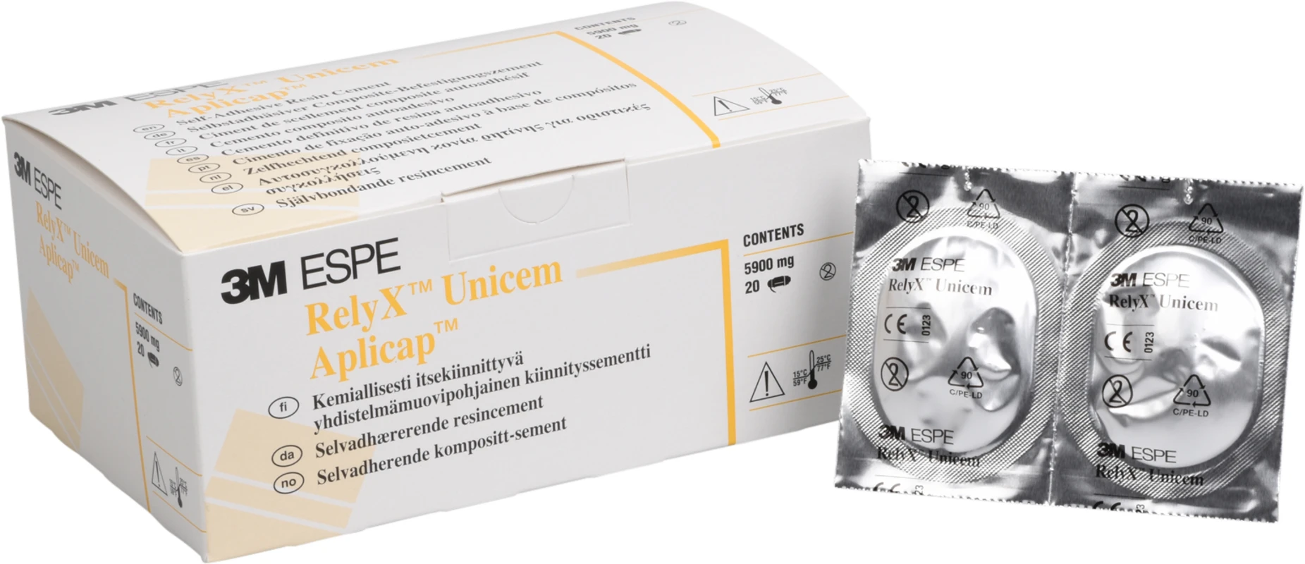 Der 3M™ RelyX™ Unicem Selbstadhäsive Komposit-Befestigungszement im 3M™ Aplicap™ System.