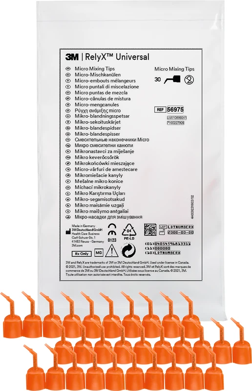 Reduzieren den Materialverwurf beim Befestigungskomposit um bis zu 80 %: 3M™ RelyX™ Universal Micro-Mischkanülen. Micro Mischkanüle für 3M™ RelyX™ Universal Automix Spritze Exzellente Mischqualität 80% weniger Materialverwurf im Vergleich zu herkömmlichen Automixspritzen Selbstverschließende Spritze ermöglicht hygienische Lagerung ohne bereits verwendete Mischkanüle Dünne, lange und einfach zu befestigender Elongation Tip erleichtert die Anwendung im Wurzelkanal Alle Anwendungen mit nur 2 verschiedenen Mischkanülen möglich Automatisches Anmischen von 3M™ RelyX™ Universal Befestigungskomposit Direkte Applikation auf die Restauration und Präparation Anwendung im Wurzelkanal mit Elongation-Tip Inhalt Mischkanülen