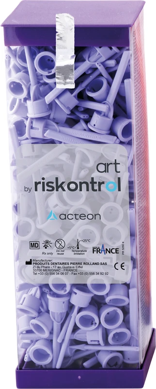 Einwegansätze mit Duft, flexibel, auswechselbar, biegsam ohne Memoryeffekt. In die Behandlungseinheit eingebaute Multifunktionsspritzen können im Gegensatz zu Turbinen weder im Autoklav noch auf eine andere Weise sterilisiert werden. RISKONTROL® verhindert das Risiko der direkten Kontamination oder der Kreuzkontamination. Mit Adapter aus eloxiertem Aluminium an allen gängigen Behandlungseinheiten zu verwenden.