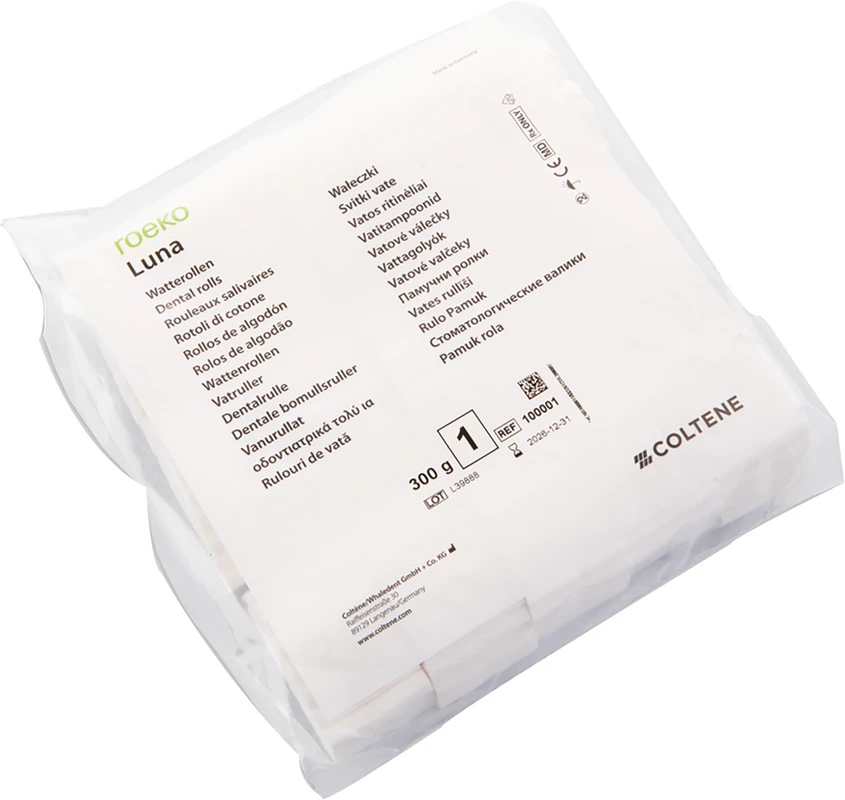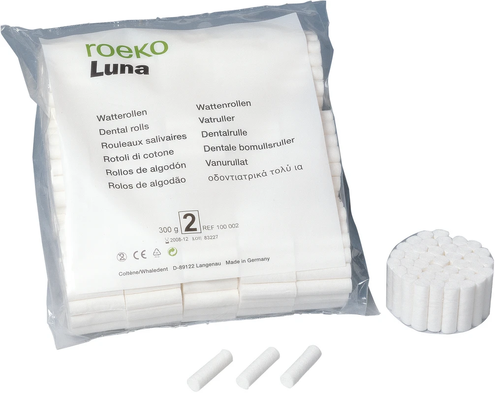 ROEKO Luna die bewährte Zahnrolle. Luna ist der Klassiker unter den Zahnwatterollen, erprobt und bewährt seit Jahrzehnten. Luna überzeugt durch ihre Fähigkeit, Wangen, Lippen und Zunge effektiv abzuhalten und das Behandlungsfeld zugänglich und feuchtigkeitsarm zu halten. Sie nimmt kontinuierlich Feuchtigkeit auf und hält diese auch unter Druck. Luna ist in 4 verschiedenen Größen erhältlich.