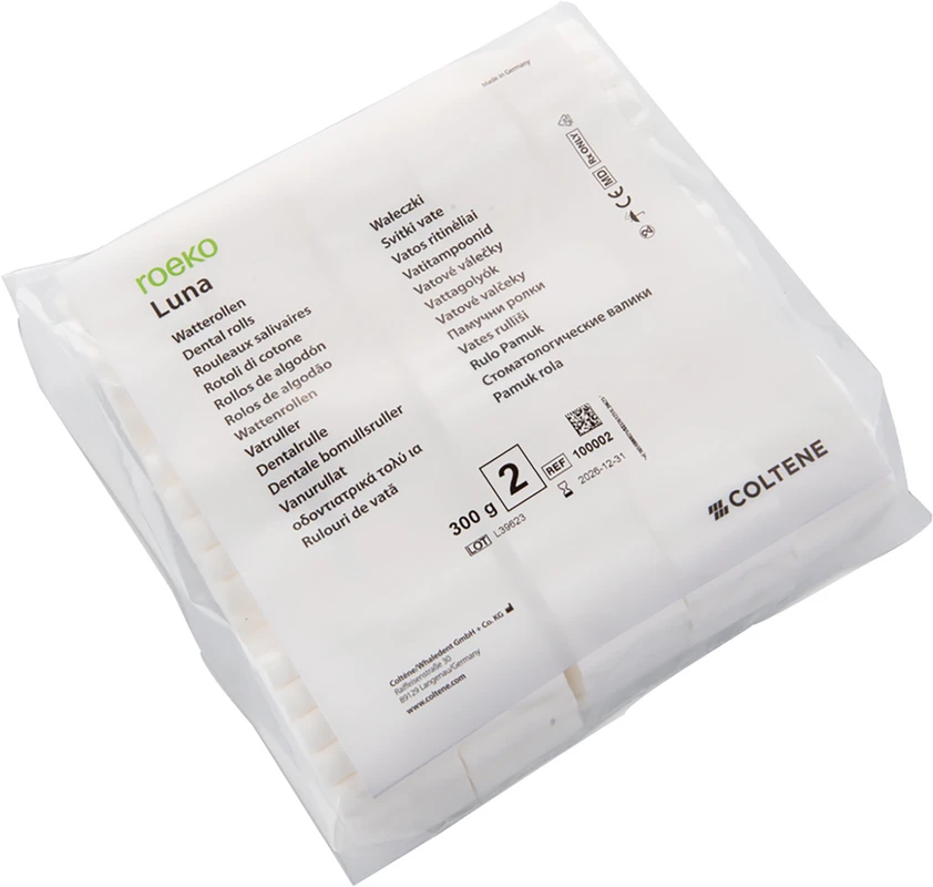 ROEKO Luna die bewährte Zahnrolle. Luna ist der Klassiker unter den Zahnwatterollen, erprobt und bewährt seit Jahrzehnten. Luna überzeugt durch ihre Fähigkeit, Wangen, Lippen und Zunge effektiv abzuhalten und das Behandlungsfeld zugänglich und feuchtigkeitsarm zu halten. Sie nimmt kontinuierlich Feuchtigkeit auf und hält diese auch unter Druck. Luna ist in 4 verschiedenen Größen erhältlich.