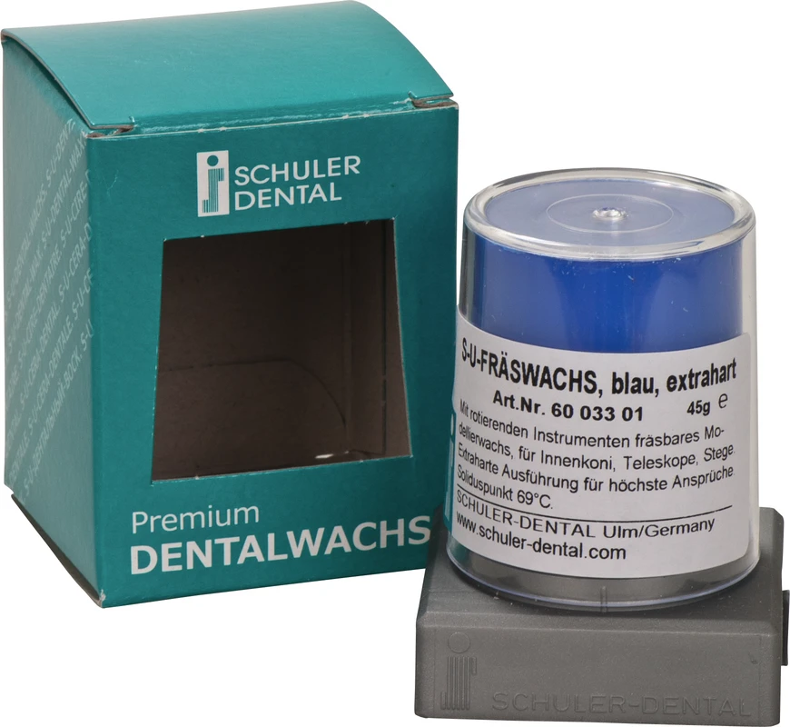 Bei diesem Wachs handelt es sich um eine härtere Ausführung des bewährten S-U-Modellierwachs blau. Es lässt sich sehr gut mit elektrisch beheizten Instrumenten, beispielsweise bei der Herstellung von Innenkoni, bearbeiten. Aufgrund der Härte ist dieses Wachs ebenfalls ideal für den Einsatz mit rotierenden Instrumenten. Erstarrungspunkt 63 °C.