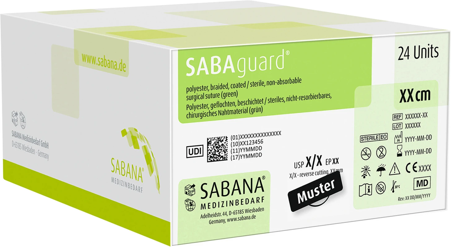 SABAguard® ist ein geflochtenes, synthetisches, nicht-resorbierbares, steriles chirurgisches Nahtmaterial aus Polyethylenterephthalat (PET). Es ist mit Silikon beschichtet, um die Handhabung zu verbessern und die Kapillarität zu verringern, was zu einer sichereren und effizienteren Anwendung führt.