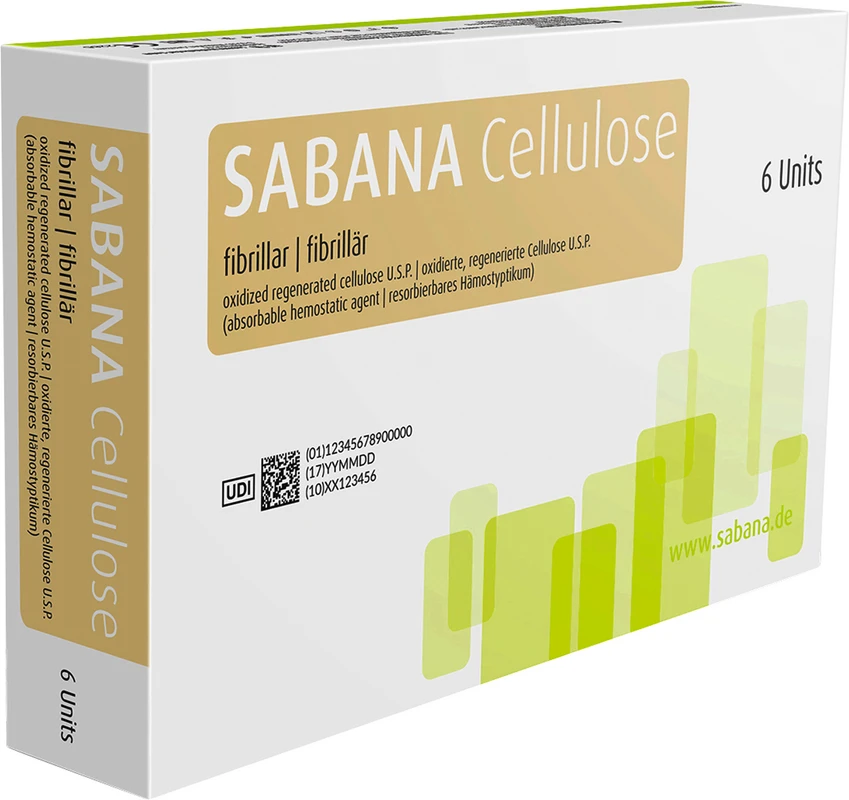 SABANA® Cellulose ist ein steriles, resorbierbares Hämostyptikum. Es wird mittels kontrollierter Oxidation aus regenerierter Zellulose hergestellt und von SABANA® in fibrillärer oder gestrickter Form angeboten.