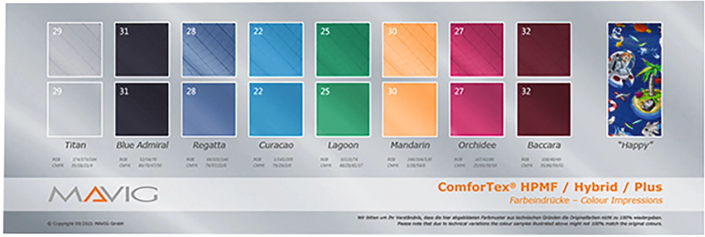 - Außenmaterial: ComforTex® HPMF oder ComforTex® HPMF Hybrid