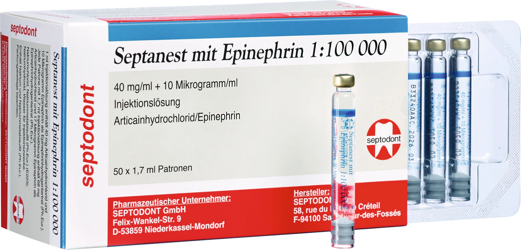 Produktinformationen "Septanest mit Epinephrin Packung 50 x 1,7 ml 1:100.000"