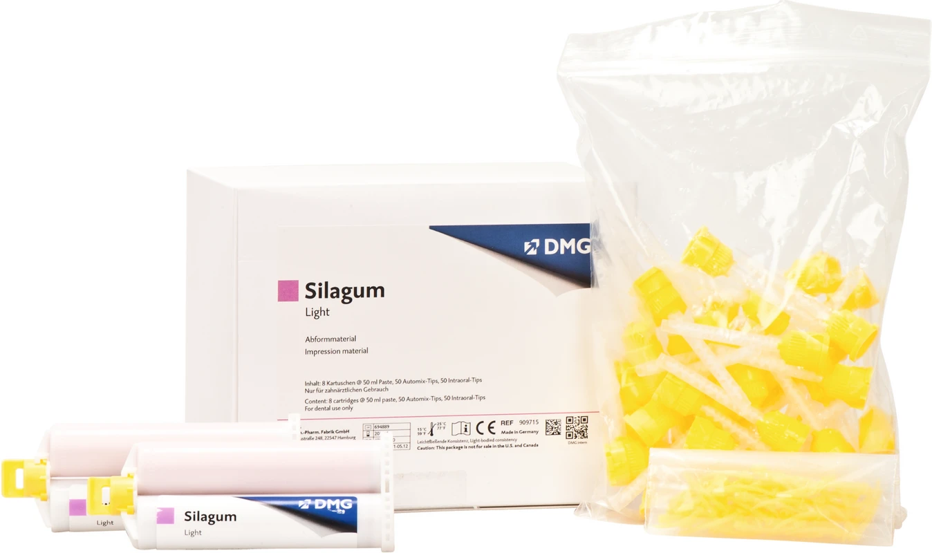Produktinformationen "Silagum Light Vorteilspackung 8 x 50 ml Doppelkartusche, 50 Automix-Tips, 50 Intraoral-Tips"