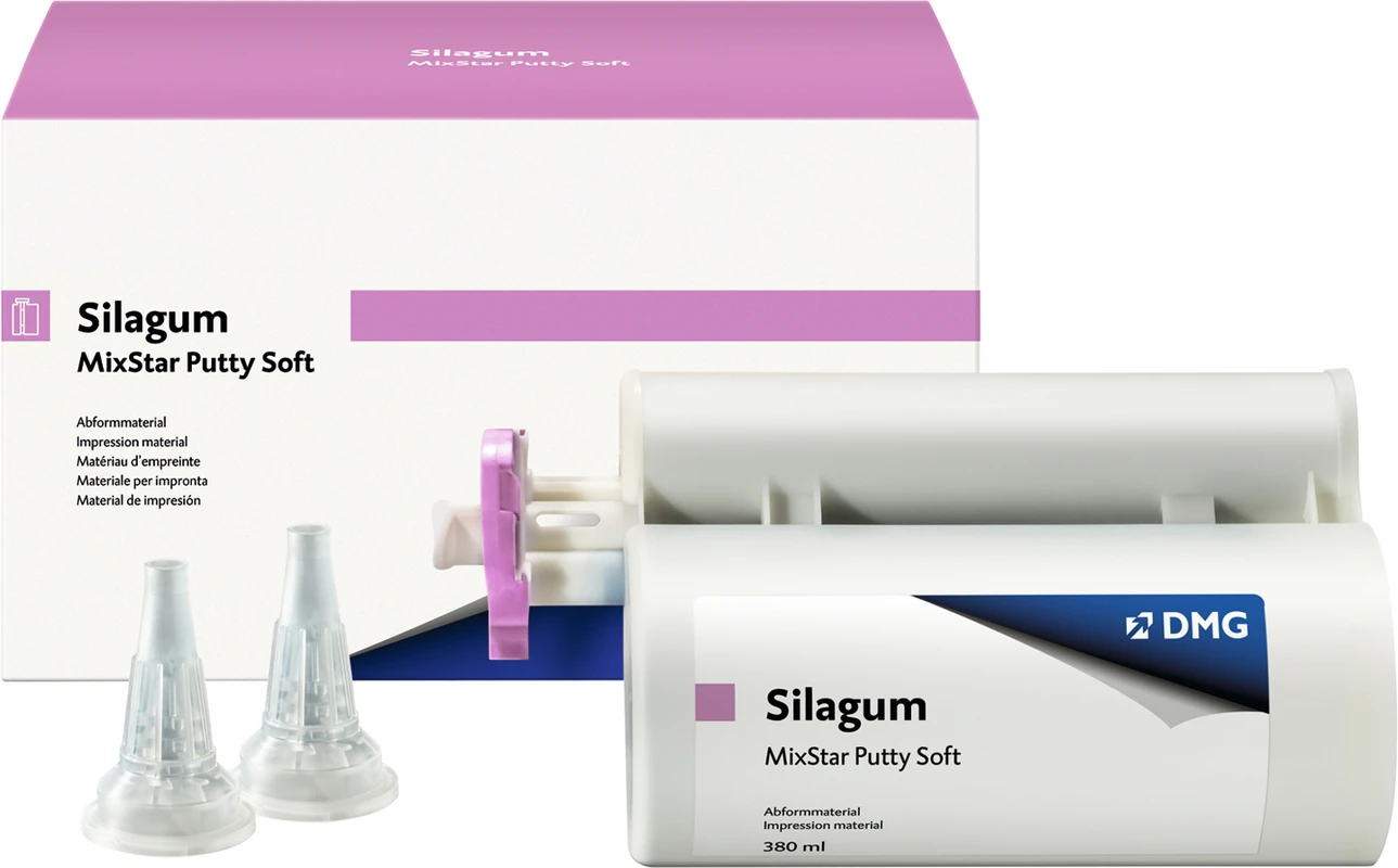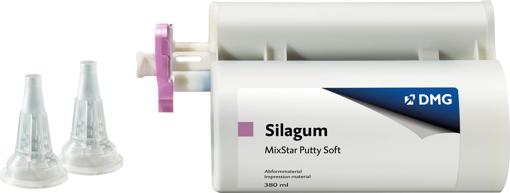 Produktinformationen "Silagum Putty Packung 380 ml Doppelkartusche Soft, 10 MixStar-Tips"
