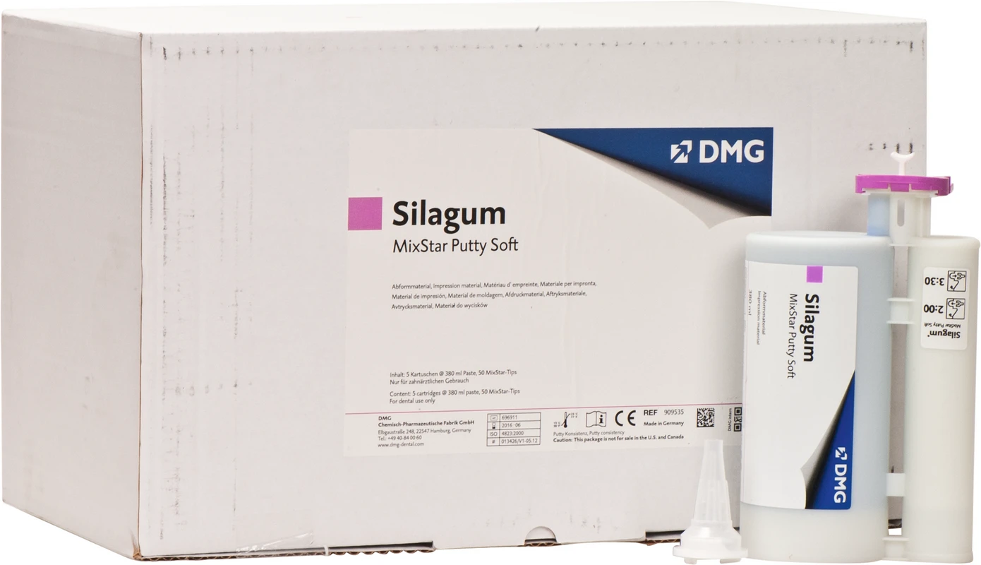 Produktinformationen "Silagum Putty Vorteilspackung 5 x 380 ml Doppelkartuschen Soft, 50 MixStar-Tips"