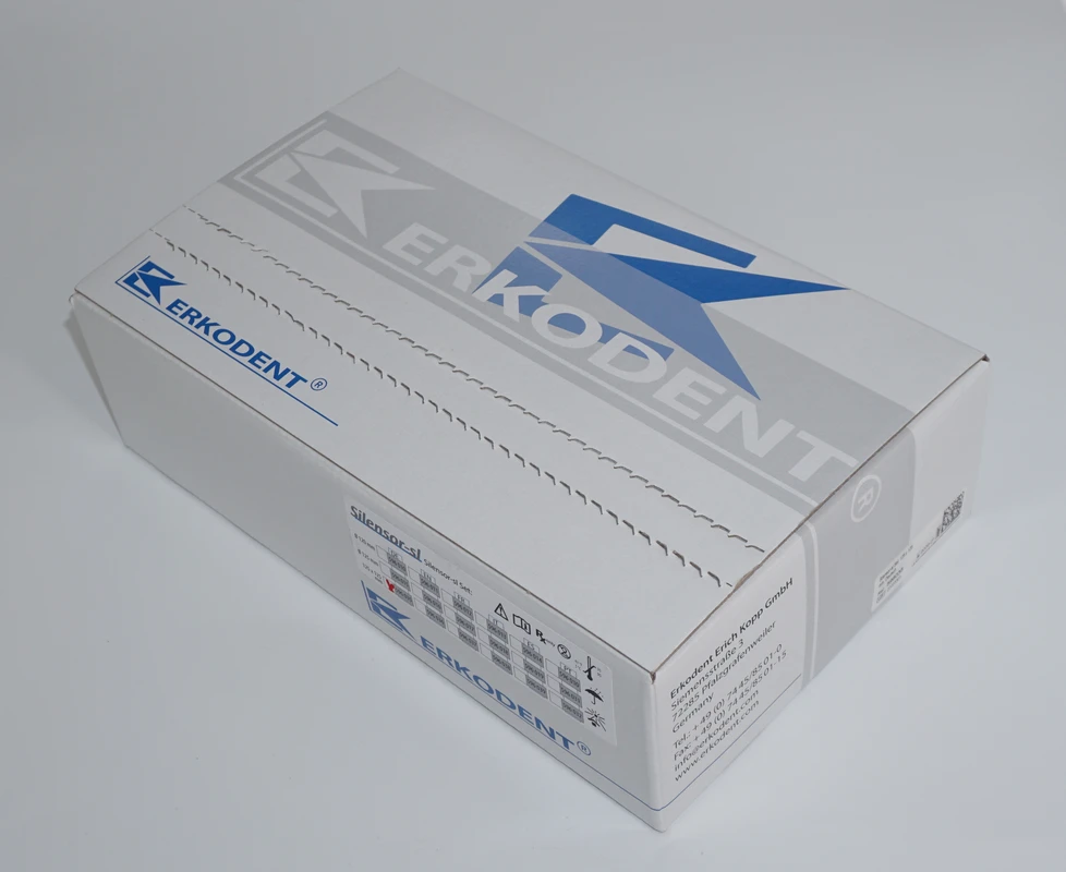 Der Silensor-sl Schnarchschutz besteht aus je einer Schiene für Ober- und Unterkiefer. Über zwei seitlich angebrachte Verbinder positioniert er den Unterkiefer. Das Silensor-sl Herstellset beinhaltet alle Materialien und Hilfmittel zur Herstellung von zwei Silensor-sl. Dazu zwei Erkoboxen zur Aufbewahrung der Antischnarchschiene und Informationsmaterial. Das Antischnarchgerät zeichnet sich aus durch: Schnelle, einfache Herstellung Hoher Tragekomfort Leicht austauschbare Verbinder Deutlich verringerte Lastspitzen und Bruchgefahr durch abfedernde, Propulsionsstöße erlaubende Verbinder Metallfreie Konstruktion Inklusive Protrusionslehre zur einfachen Registrierung der Vorlage Inhalt 1 Erkodur klar 25 mm1 Erkodur freeze 25 mm1 Erkoloc-pro transparent 3 mm1 Erkoloc-pro blu 3 mmErkolen 1 mm2 Teile-Karteca. 20 g Erkogumca. 5 g Ausblockwachsca. 10 ml Erkoskin1 Boardmarker1 HSS-Bohrer 14 mm2 Erkoboxen2 Silensor Pflegeanleitungen10 Silensor-sl Patientenflyer Produktvideos: