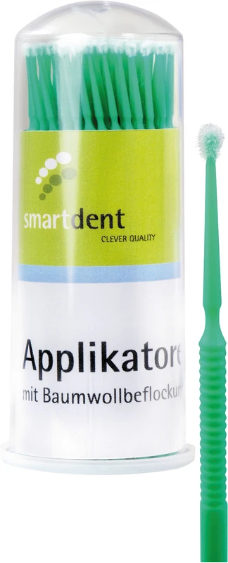 Die smart Applikatoren eignen sich für eine Vielzahl zahnmedizinischer Anwendungen, bei denen Materialien gezielt und kontrolliert appliziert werden müssen. Der nicht absorbierende, beflockte Kopf sorgt für hohe Dosiergenauigkeit und minimierten Materialverlust.