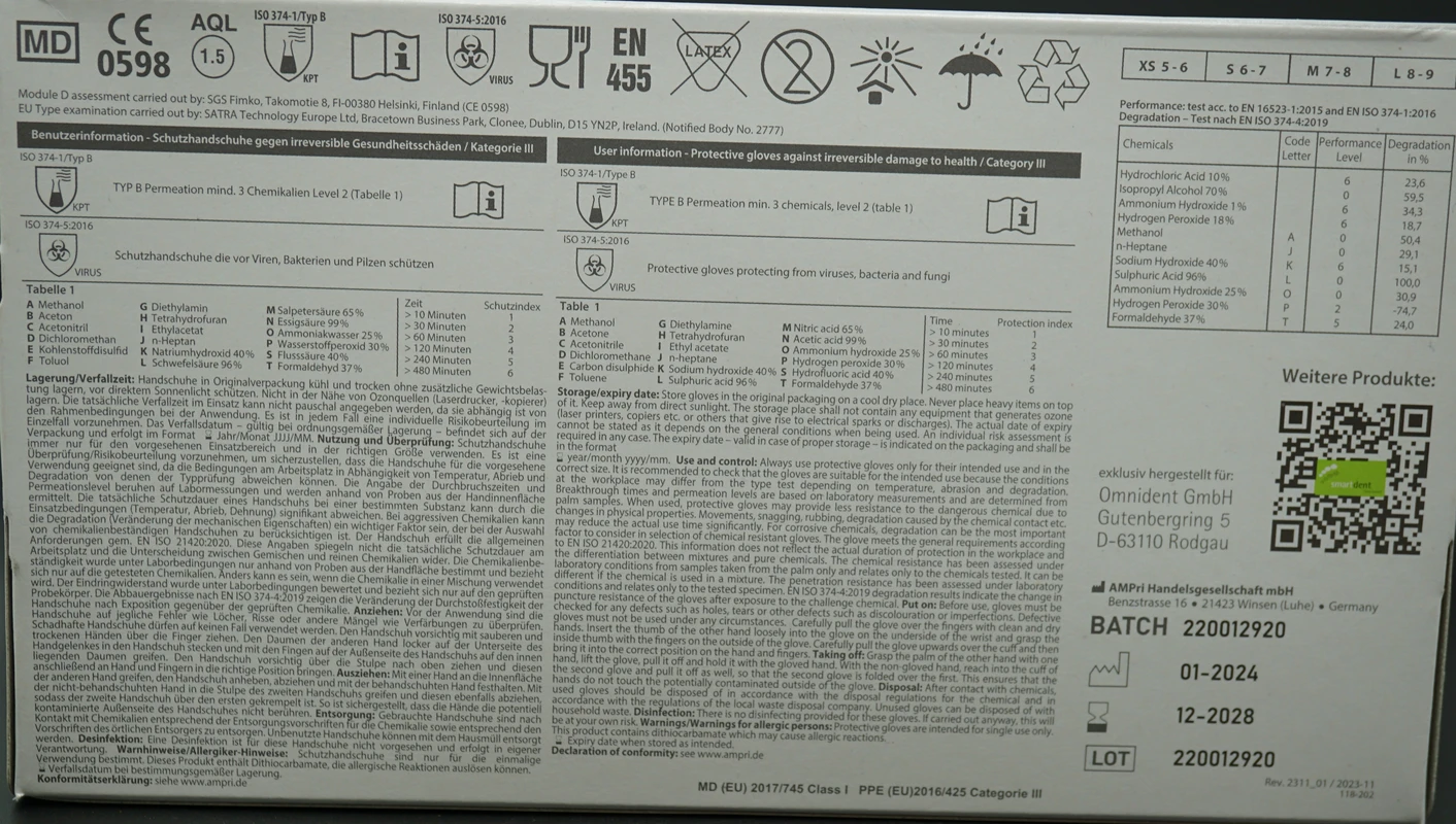 – Erfüllt die EN 455 & EN 374