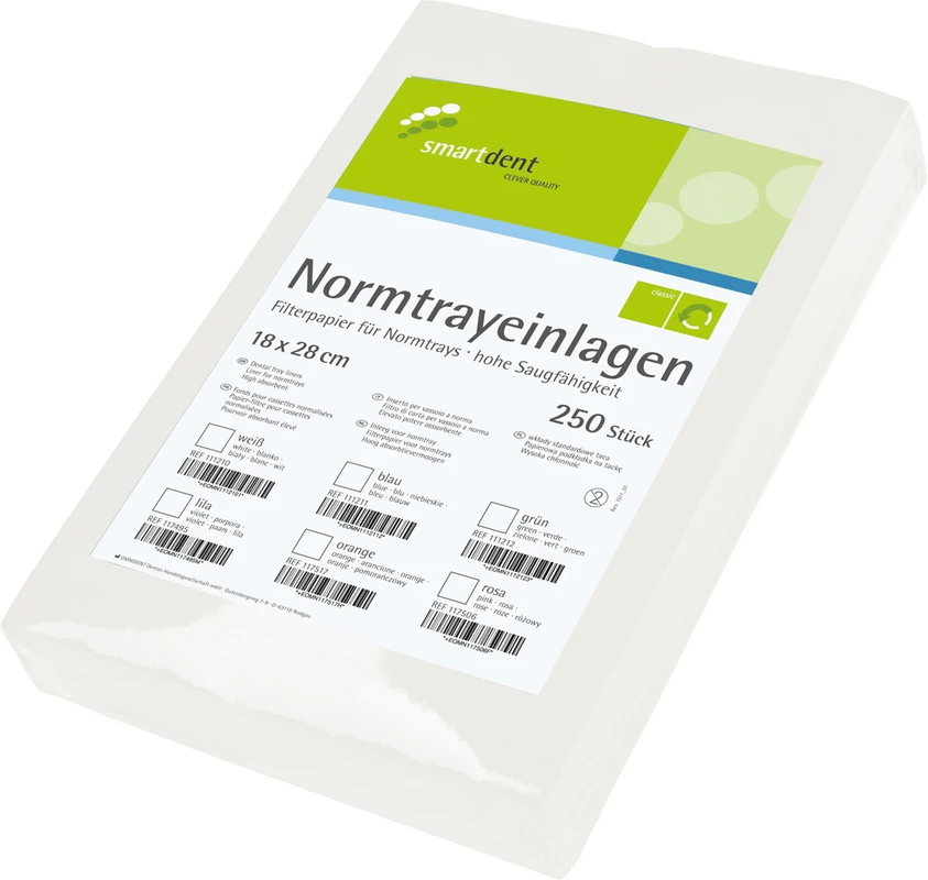 Die smart Normtrayeinlagen dienen als hygienische Auflage für zahnärztliche Trays während der Behandlung. Sie schützen dieses vor Verunreinigungen, nehmen Feuchtigkeit zuverlässig auf und fördern eine strukturierte und saubere Instrumentenorganisation im Behandlungsablauf.