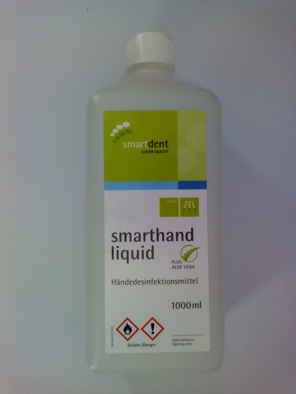 Das smarthand liquid ist eine alkoholhaltige, antiseptische Lösung für die hygienische und chirurgische Händedesinfektion. Sie wirkt bakterizid, levurozid, tuberkulozid und ist begrenzt viruzid. smarthand liquid hygienische Desinfektion (EN 1500), durch verreiben der Lösung (3 ml) mit der erforderlichen Einwirkzeit von 60 Sekunden. Außerdem erfüllt das smarthand liquid die Anforderungen einer chirurgischen Desinfektion (EN 12791) durch Verreiben von 3 ml Liquid mit der erforderlichen Einwirkzeit von 1,5 Minuten. Vorgang wiederholen.