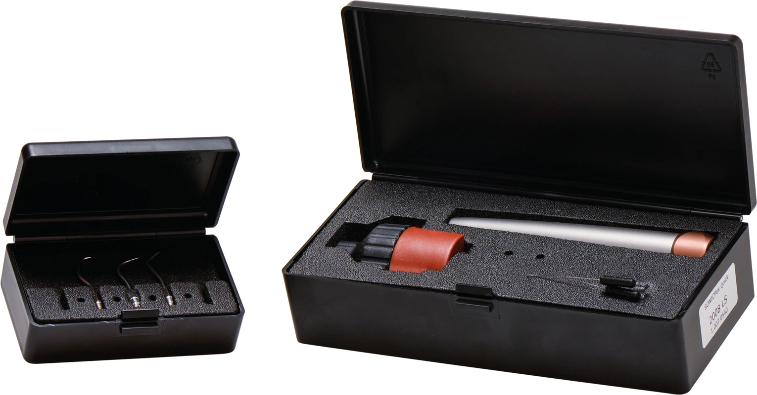 Schnelles und unkompliziertes Einschrauben und Wechseln der Spitzen - Nur noch eine Umdrehung - auch mit Sironaanschluss. Einmalige Investition für eine Vielzahl von Indikationen: Prophylaxe, Parodontologie, Endodontie, Inlaypräparation, Chirurgie, minimalinvasive Kariestherapie. Riesige Auswahl aus über 50 verschiedenen Spitzen, herausragende Ergebnisse in sämtlichen Behandlungssituationen, blendfreie spitzenzentrische Ausleuchtung, 3-stufige Regulierbarkeit der Abtragspower, sanfte und schonende Abtragsleistung durch Schallanwendung.
