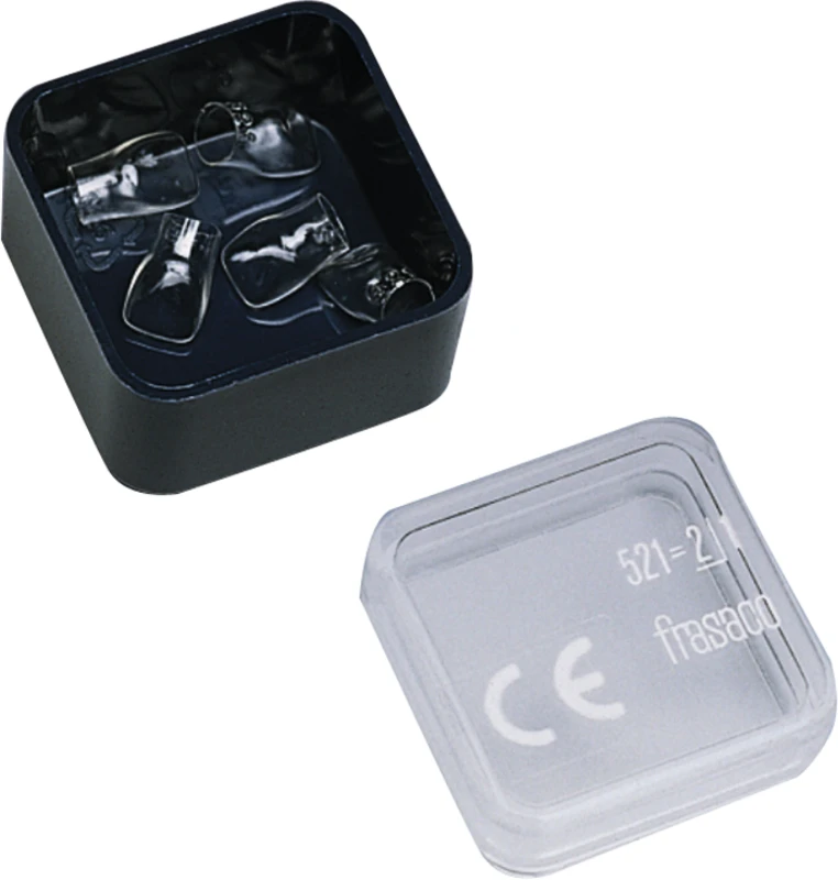 frasaco-Strip-Kronen sind dünn, elastisch, leicht zu beschneiden und in klarer Ausführung, lichtdurchlässig für Polymerisationslicht. Sie dienen als Formgeber, der temporären Versorgung beschliffener Zähne, dem Schutze großer Füllungen sowie als Matrize für Ecken- und Kantenaufbauten. Das Aufsetzen erfolgt mit den üblichen provisorischen Füllungsmaterialien.