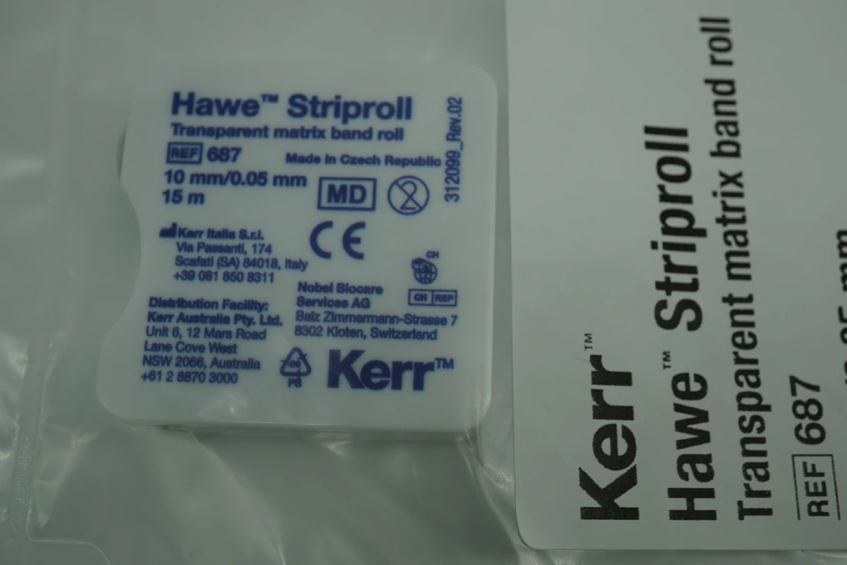 Polyesterstreifen im handlichen Spender für alle Füllermaterialien für Frontzähne. 0,05 mm dünn.