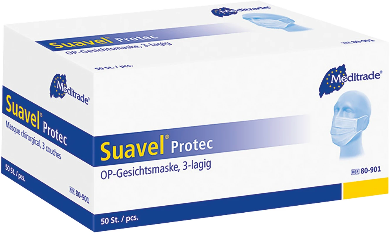 Produktinformationen "Suavel® Protec OP-Gesichtsmaske Packung 50 Stück blau, mit elastischer Ohrenschlaufe"