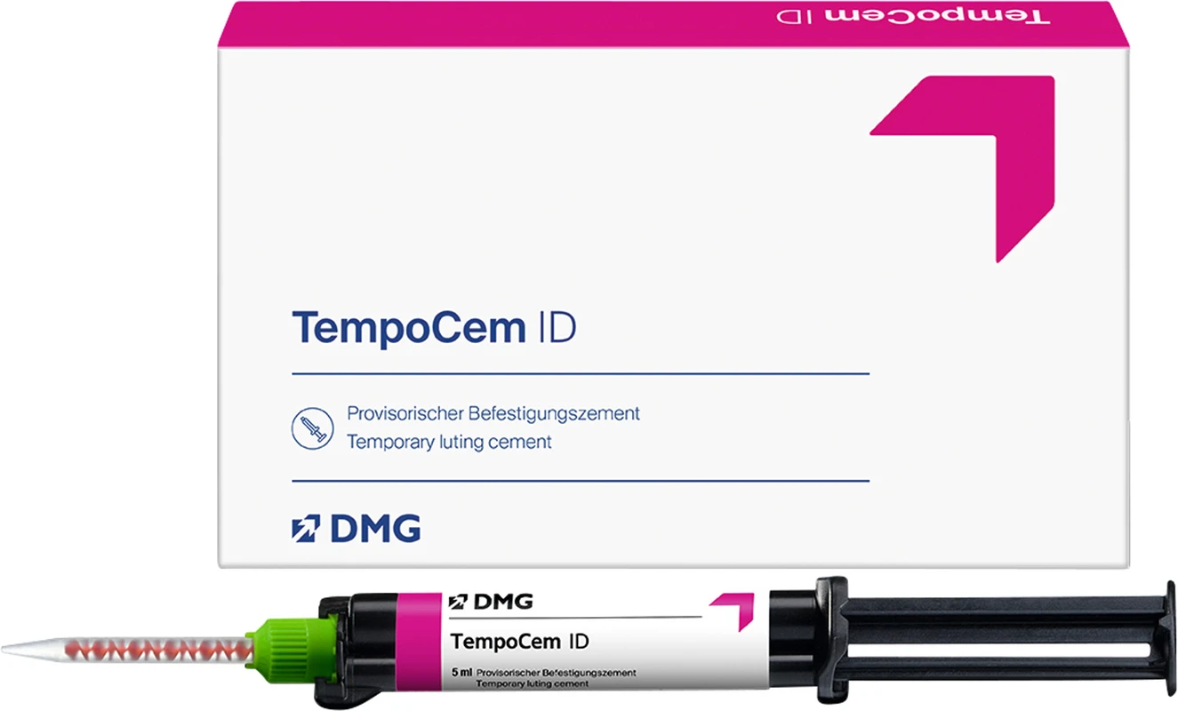 TempoCem Automix eugenolhaltiger temporärer Befestigungszement für provisorische und permanente Kronen, Brücken, Inlays, Onlays, sowie temporäre Befestigung von implantatgetragenem Zahnersatz. Automatisches Mischen und direkte Applikation. Geringe Filmdicke.VorteileBeruhigende Wirkung durch EugenolOptimale Haftung und EntfernbarkeitÜberschüsse lassen sich leicht entfernenDirekte Applikation in das Provisorium Inhalt 63 g Kartusche35 Automix-Tips
