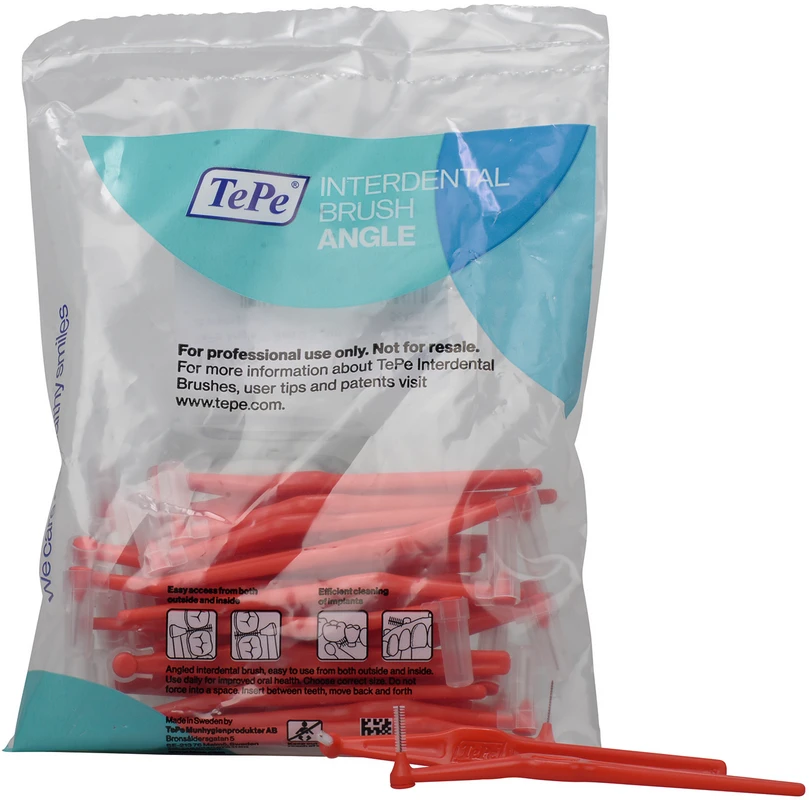 TePe® Interdentalbürsten Angle™ sind einfache anzuwendende Interdentalbürsten, die eine gründliche Reinigung aller Interdentalräume ermöglicht. Durch den schmalen, gewinkelten Bürstenkopf ist die Reinigung im Molarenbereich - sowohl palatinal, lingual als auch bukkal möglich. Der lange und flache Griff ermöglicht eine kontrollierte Reinigung der Interdentalräume. TePe® Interdentalbürsten Angle™ sind in sechs Größen erhältlich. Die Größen richten sich nach den TePe® Interdentalbürsten Original. Alle Größen haben einen kunststoffummantelten Draht zur schonenden Reinigung.