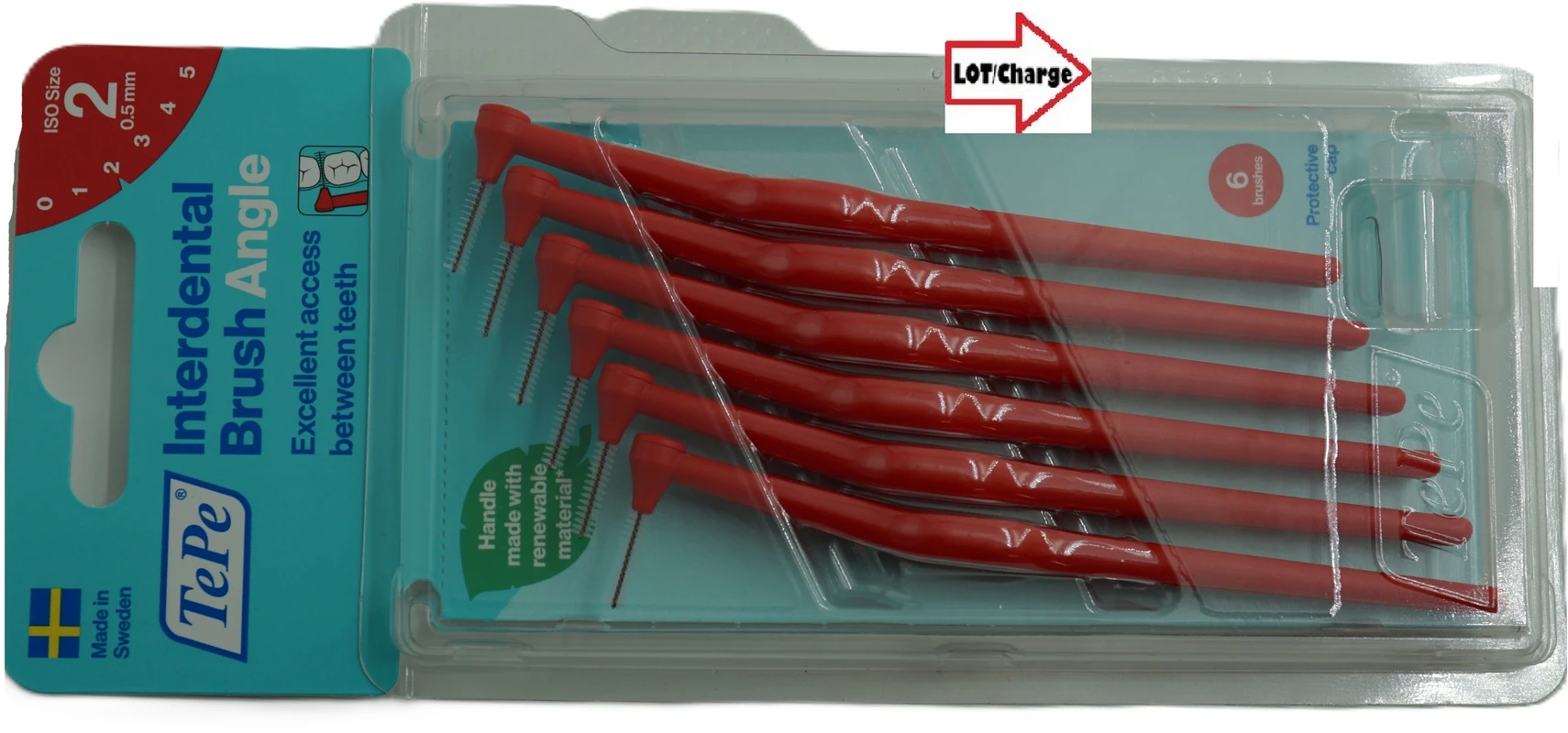Produktinformationen "TePe® Interdentalbürsten Angle™ Packung 6 Stück rot, Ø 0,5 mm"