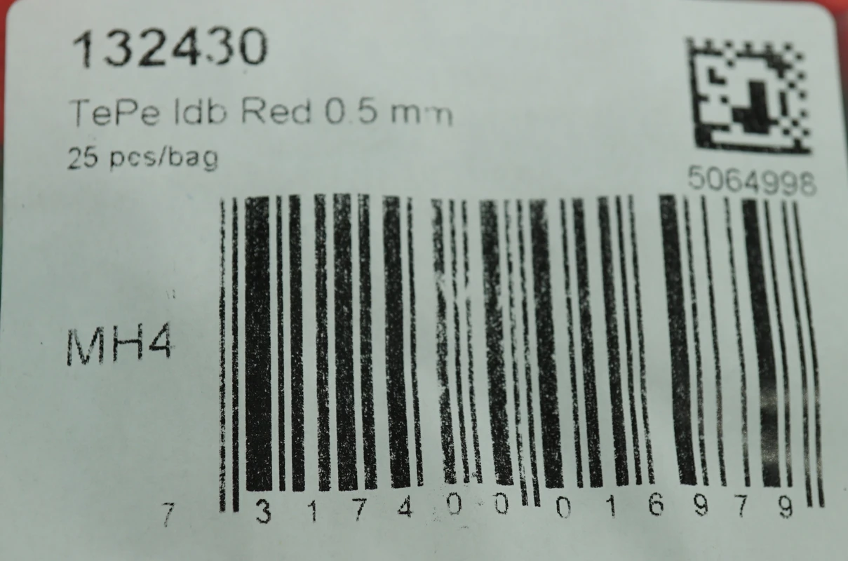Inhalt: 25 Interdentalbürsten, rot (Ø 0,5 mm)