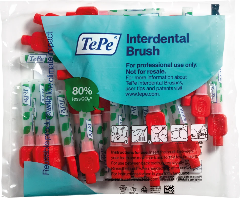 Effektive Interdentalreinigung mit nachhaltigem Anspruch: Die TePe® Interdentalbürsten Original sind die bewährte Lösung für eine gründliche und zugleich schonende Reinigung der Zahnzwischenräume. Entwickelt in Zusammenarbeit mit zahnmedizinischen Experten. Der ergonomische Griff, der integrierte Drahtschutz und das umweltfreundliche Produktionsverfahren machen diese Bürsten zur idealen Wahl für eine professionelle Interdentalpflege in der Praxis oder Zuhause.