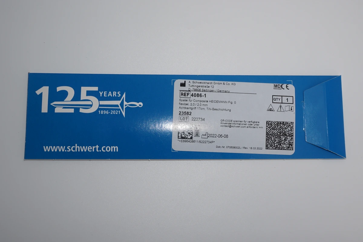 TiN Komposite Spatel nach Heidemann Stück Figur 0,2 / 2,0 mm, 17 cm, flexibel, Achtkant Griff