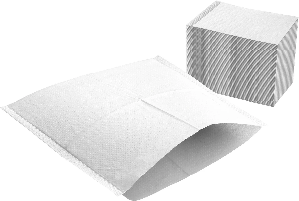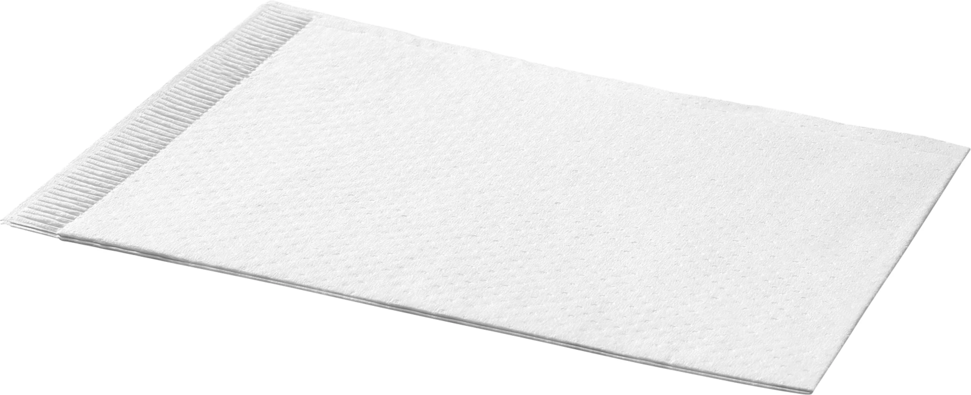 Tissue 26 g/m² + Polyethylen. 1 Lage extrastarkes (26g/m²), saugfähiges Tissue aus reinem Zellstoff und 1 Lage PE-Folie. Geprägt und gefaltet. Latexfrei.