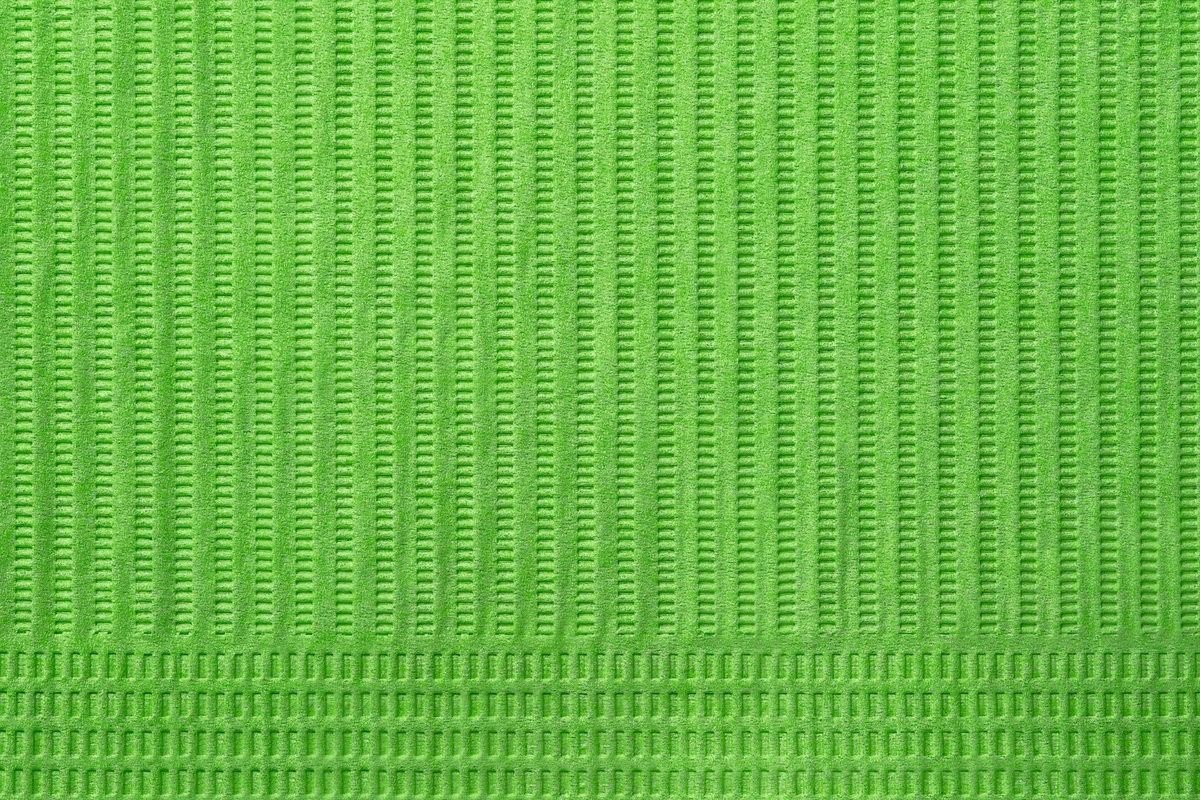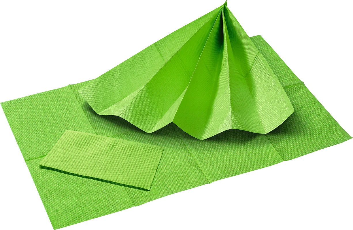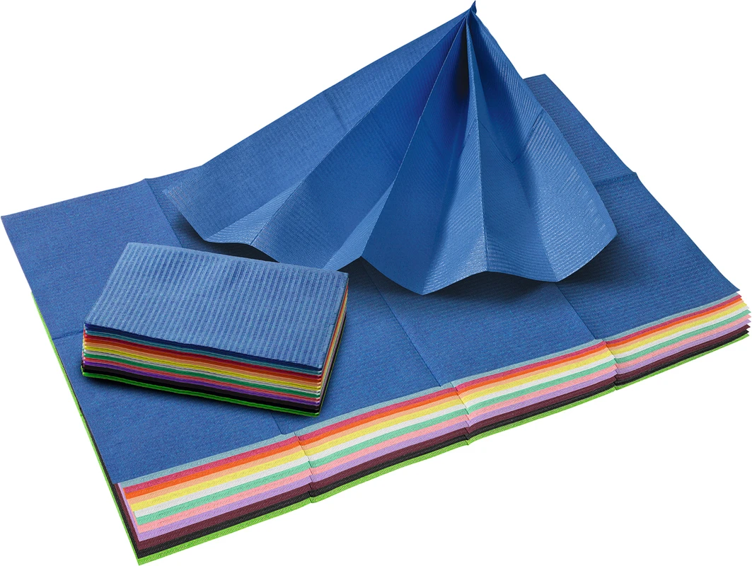 1 Lage Tissue aus reinem Zellstoff von 26g/m² und 1 Lage PE-Folie. Die speziellen Eigenschaften der Materialien bieten höchste Saugfähigkeit und Wasserbeständigkeit, um einen hohen Komfort des Patienten zu garantieren. Geprägt und gefaltet. Latexfrei.