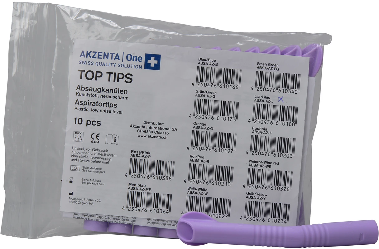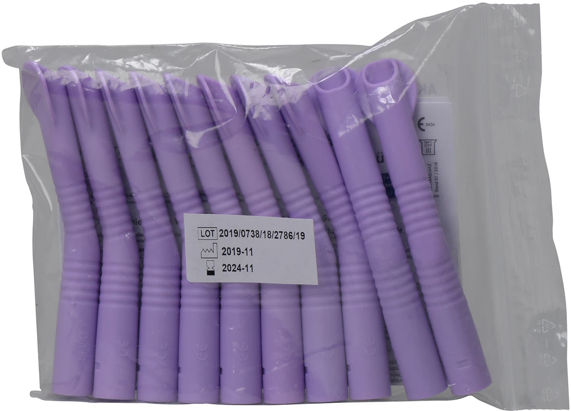 Absaugkanülen aus Kunststoff, hohe Fertigungsqualität. Geräuscharm geformt mit breitem Schild, rutschfeste Oberfläche, gute Ergonomie, liegt daher leicht und gut in der Hand. Mattierte Oberfläche (keine störenden Lichtreflexe). Sterilisierbar in der Autoclave bis 134 °C.