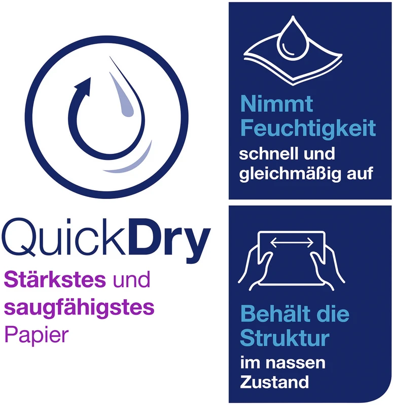 – 2-lagiges QuickDry-Papier: besonders saugstark und