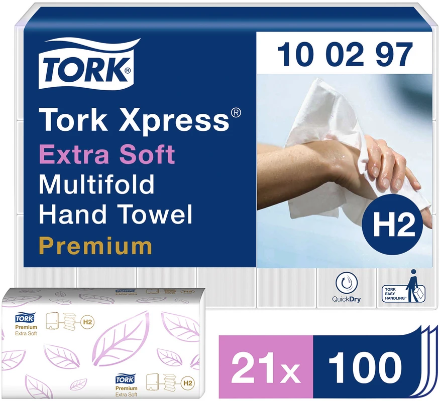 TORK® Xpress® Multifold (Interfold) Handtücher H2 System Karton 20 x 237 Stück 2-lagig, weißProduktinformationen "TORK® Xpress® extra weiche Multifold (Interfold) Handtücher H2 System Karton 21 x 100 Stück"