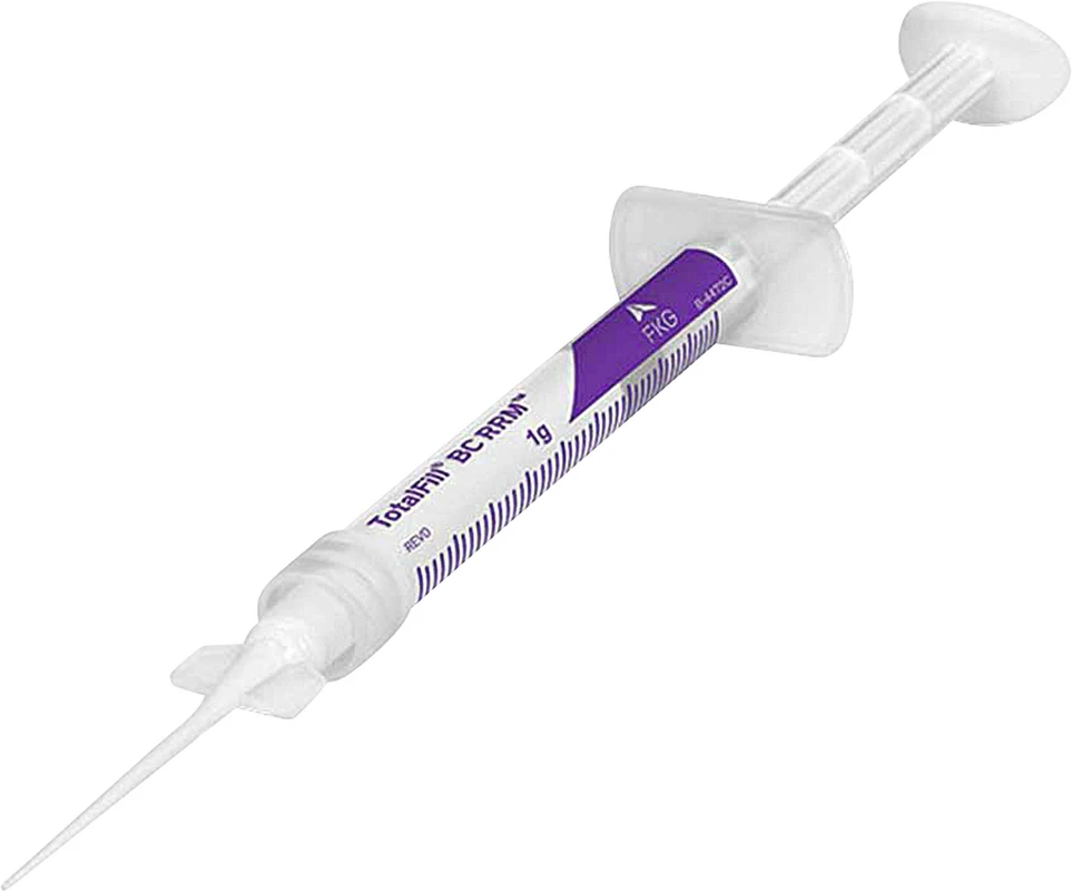 Total Fill Root Repair Material (rrm, Hersteller BUSA) ist in zwei speziell formulierten Konsistenzen erhältlich (vorgemischte Paste aus der Spritze oder Putty) und besitzt viele Eigenschaften des Total Fill BC Sealers. Einfache Handhabung durch besondere Konsistenz und kurze Aushärtezeit (~ 2 Stunden) - all das macht Total Fill RRM sehr resistent gegen Ausspülung und zur optimalen Lösung für alle Wurzelreparaturen und Pulpaüberkappungen. Forschungsergebnisse und zahlreiche Fälle bestätigen, dass Total Fill RRM hoch biokompatibel, bioaktiv, osteogen und antibakteriell (+ 12pH) ist und somit für exzellente Heilung sorgt.